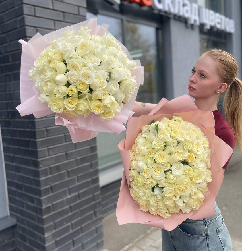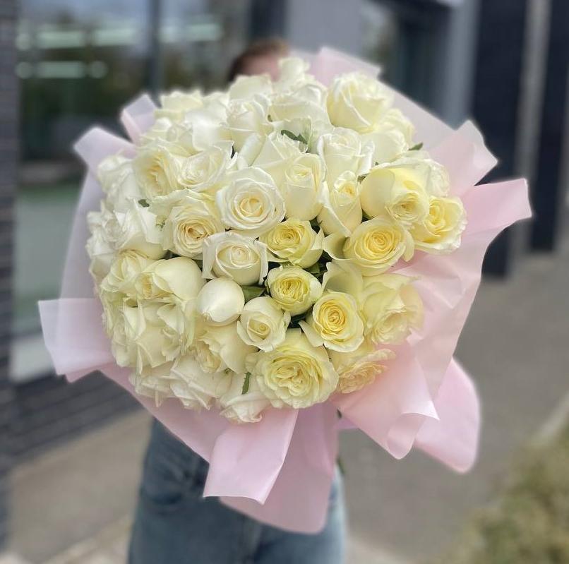 Букет из 51 белой розы 40/50 см